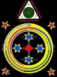 Variante do círculo e triângulo de Aleister Crowley, usado na evocação dos setenta e dois espíritos do Ars Goetia.